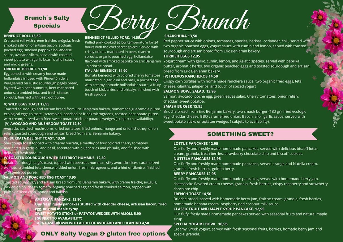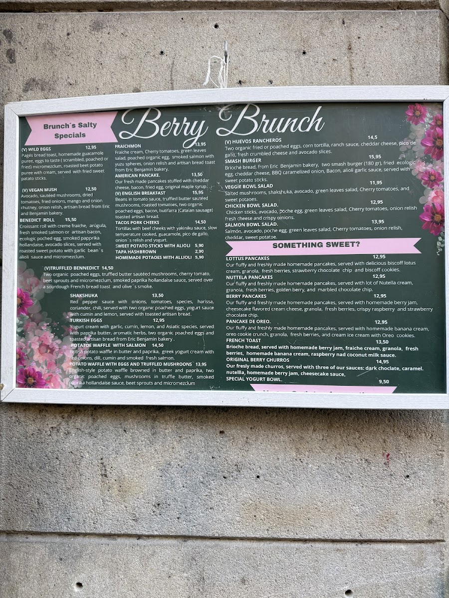 Welcome to Berry Brunch Barcelona, where brunch transcends the ordinary. Nestled in the heart of L'Eixample, this charming eatery features a vibrant menu that tantalizes your taste buds. Start your brunch adventure with their Tostada de Salmón y Huevo Poché, showcasing eco-friendly poached eggs atop artisan sourdough, enriched with creamy fraiche and zesty harissa. Priced at €13.95, it’s a savory delight.